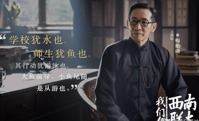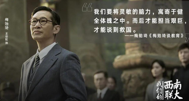 王劲松在剧中饰演的是清华大学校长梅贻琦,你还真别说,王劲松演反派是一绝,但穿上长衫、戴上眼镜,又活脱脱是一位文人了。