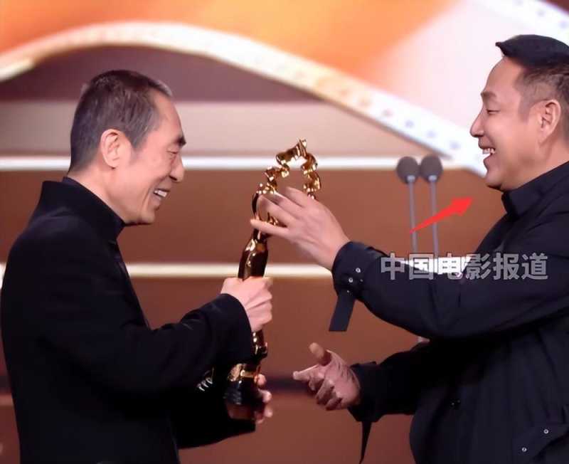 为张艺谋颁奖的是老戏骨陈道明,他在颁奖环节还把张艺谋的奖杯藏在了怀里,以至于很多人看他的肚子还以为是发福了,甚至有网友开玩笑说,以为“怀”了,真就是男人至死都是少年,也看得出他和张艺谋的关系不错。