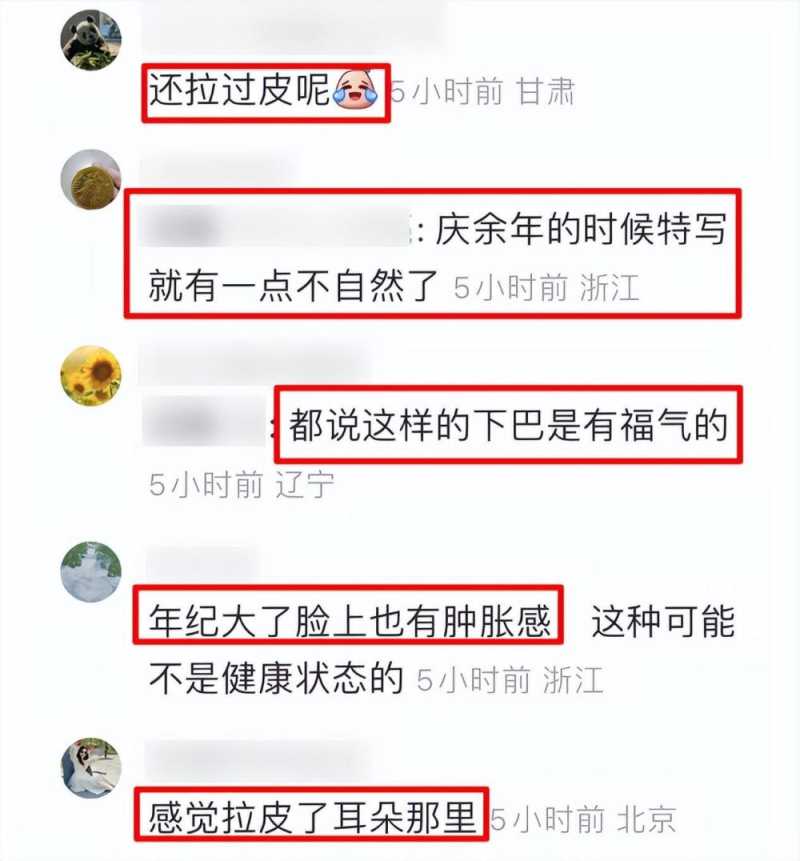 镜头给到正面,陈道明的脸看上去还很肿胀,带动的面部表情有些僵硬不自然,有网友甚至猜测他耳朵处做了拉皮,下巴打了玻尿酸,似乎还没有完全恢复好。
