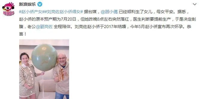 去年5月份,赵小侨在怀孕30周时宣布喜讯,说宝宝状况非常健康稳定,并且给宝宝取了个小名叫典典,来感谢这一路的恩典。