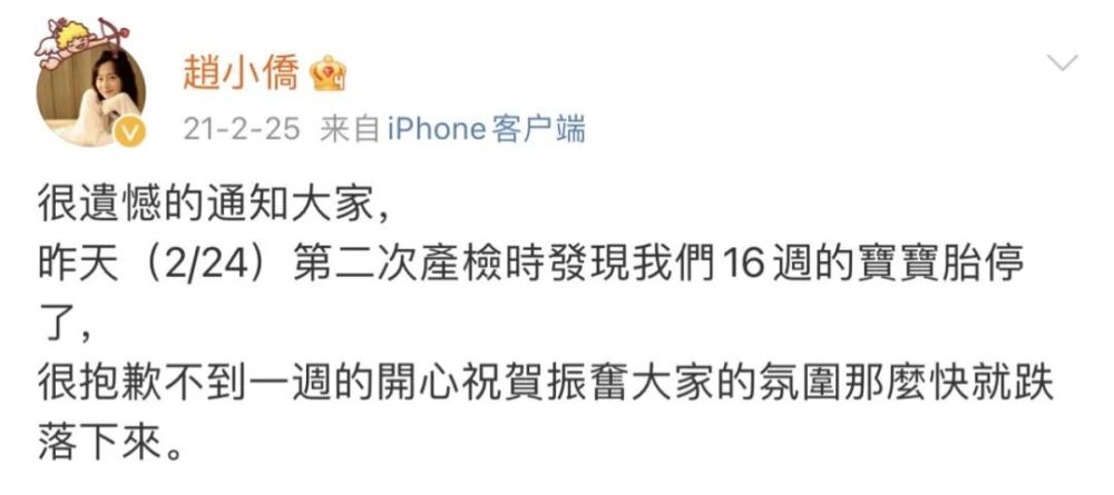 可没想到官宣怀孕没多久,第二次产检时发现,怀孕16周的宝宝胎停了。