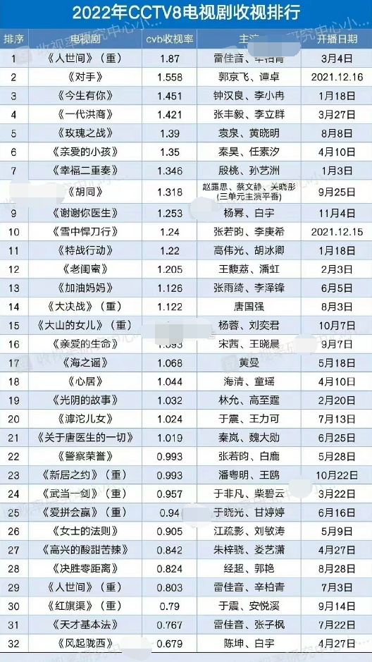 这样的收视成绩哪怕是放在去年,都是央视剧播的倒数水平,毕竟去年垫底的《风起陇西》至少都有0.6的收视。