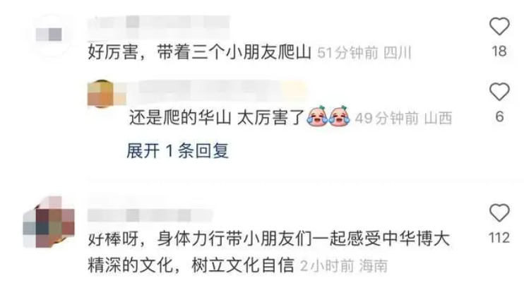 从晒出的照片来看,郭晶晶与3个孩子打扮低调,在爬华山时,她也是让孩子们一步步往上爬,锻炼他们的体力与毅力。
