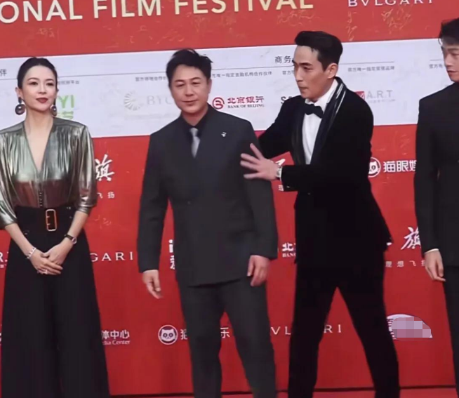 入场时,陈凯歌眼见张颂文来了,直接把身旁的章子怡推到旁边,拉着张颂文亲热交谈。