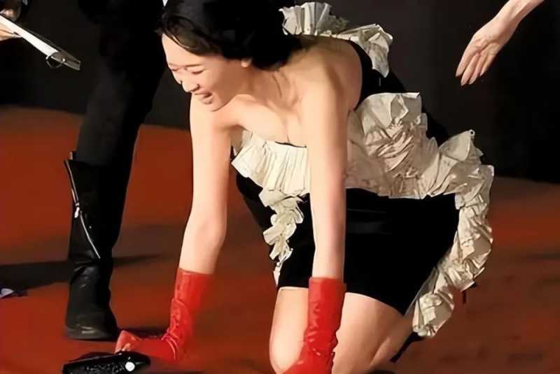 章子怡也曾经在红毯上走光过,她自己撩起裙摆,没想到“用力过猛”,大腿根都露出来了。