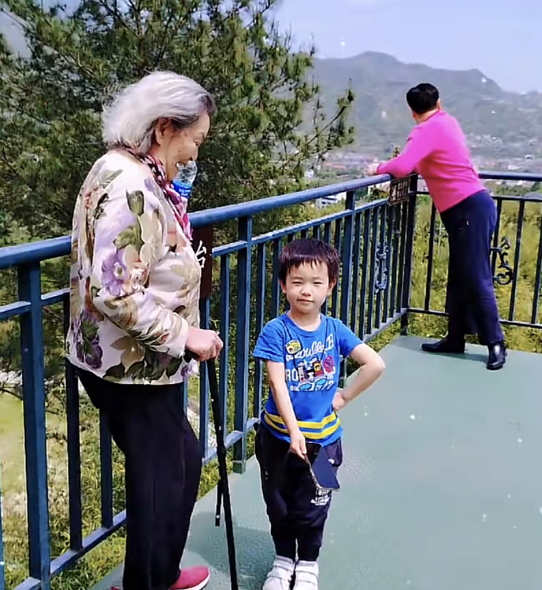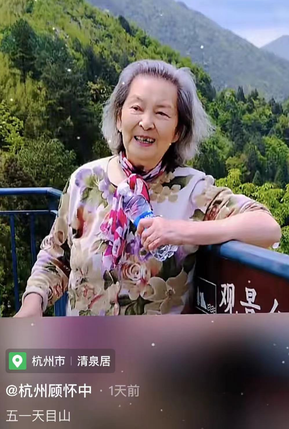 顾怀中带着母亲和孩子去爬了天目山,91岁了还能爬那么高的山,身体素质是真好,想来平日里周贤珍应该天天锻炼身体,所以能爬上去,她还和孙子合影,满脸的笑容让人觉得很温暖。