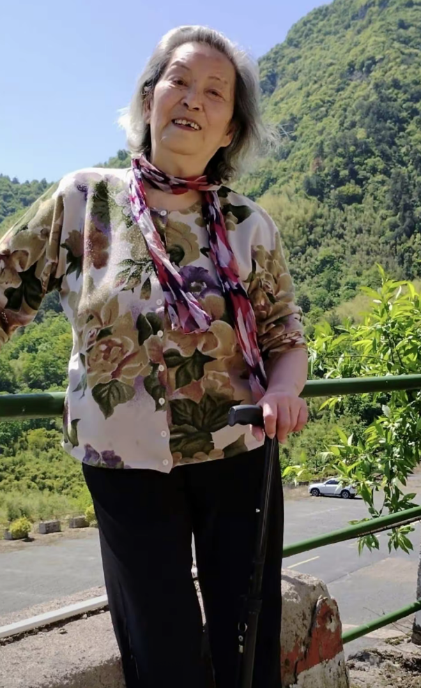 在顾艳晒出的照片中,可以看到周贤珍老师身穿印花上衣,虽然已经91岁了,头发几乎全白,但看不出有那么大年纪,除了腿脚有些不便需要拄着拐杖之外,整个人的精神面貌非常好,身体看上去很硬朗。