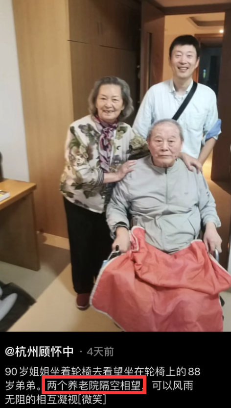 周贤珍也没有跟着儿子生活,而是选择住在养老院中,前几日,顾怀中晒出母亲的照片告知妈妈所在的养老院和舅舅所在的养老院相隔一条街,这些年住养老院也都已习惯。