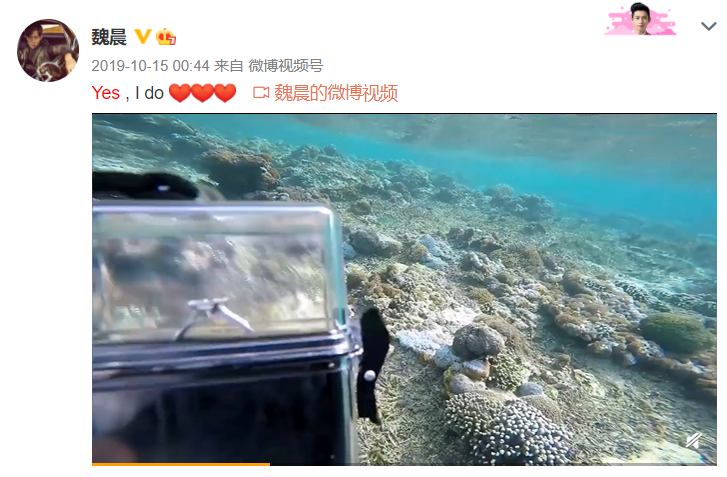 其实粉丝也早就知道了嫂子身份,所以19年,魏晨在于玮生日当天晒出水下求婚的视频,全网都是恭喜,
