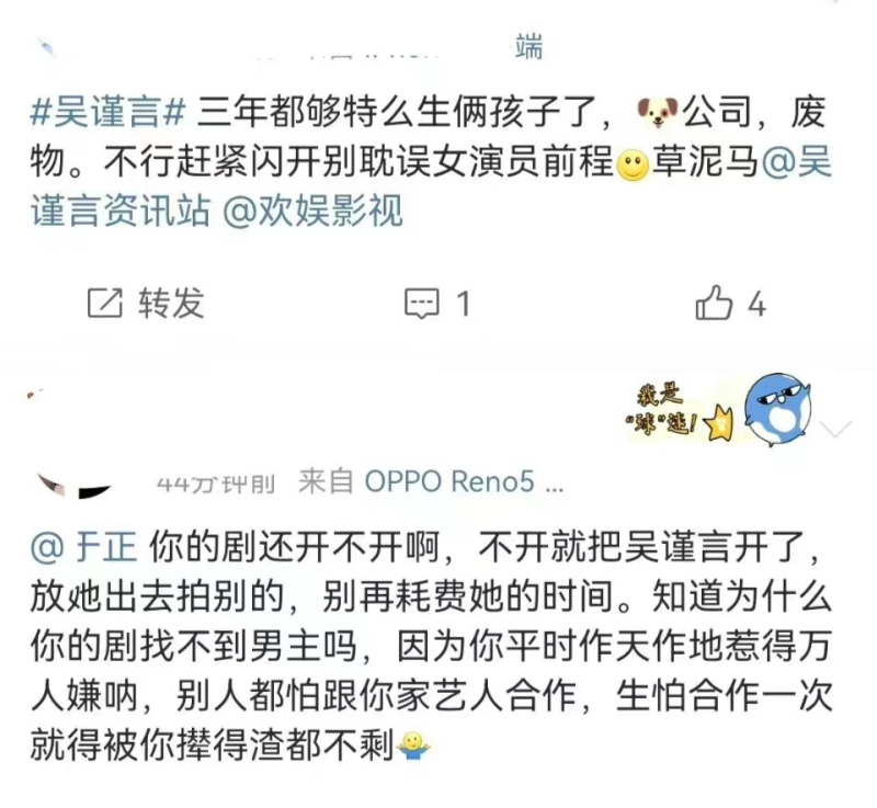 粉丝纷纷发言怒斥公司和团队不做事,导致两年多的时间没有进组,吴谨言被他们给活活耽误了。