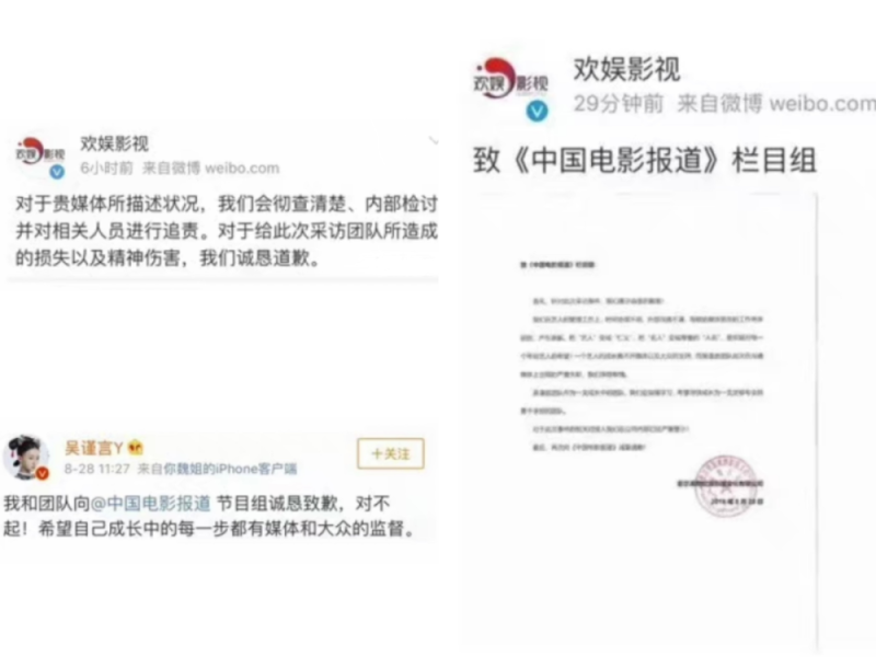 中国电影报道大度的接受了吴谨言团队及其所在公司的道歉,希望这是第一次也是最后一次点名批评青年演员团队,并期盼每个青年演员都应遵守艺德,具备良好健全的品行。