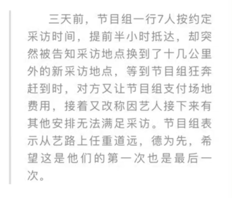 同她的演技一样烂的还有她的人品,吴谨言在爆红后并没有像其他演员一般潜心磨练自我,专研剧本,而是嚣张跋扈不断摆谱儿,将剧中的“脾气爆不好惹”带到了戏外,甚至“耍大牌”耍到了央视跟前,不过央视可不惯着,直接在微博上点名批评,称: