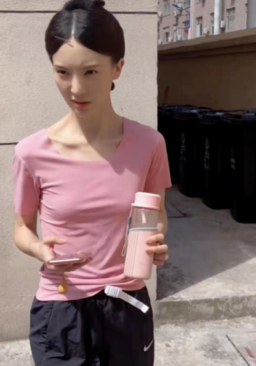 在某次拍戏的路透中,身穿贴身短袖的金晨,引起了不小的争议,无他,太瘦了,以至于显得头重脚轻。