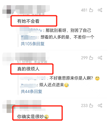 当谢娜以调侃的方式回应后,评论区依旧是一片“有她不会看”“真的很烦人”“你确实是很吵”。