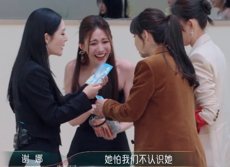 其次呢,谢娜在第一期节目里,也展现了交友的“两幅面孔”。