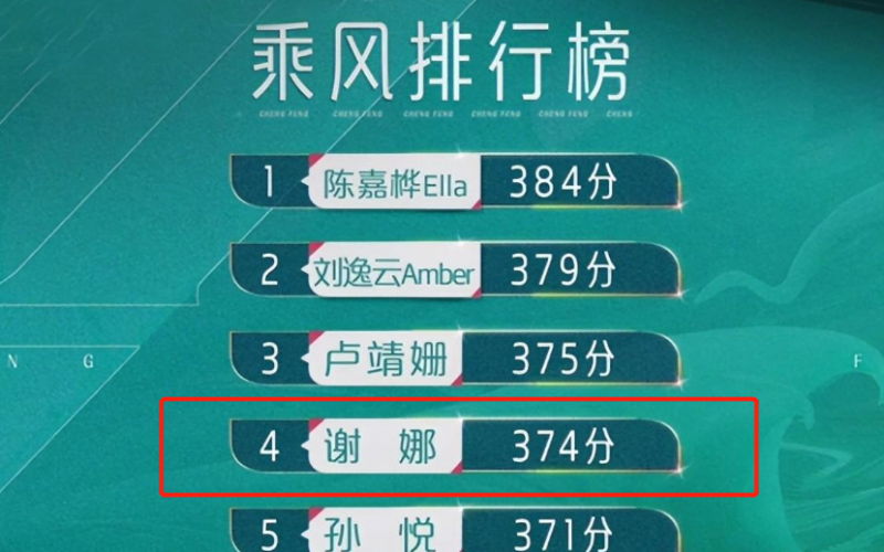 但由于是芒果台的亲闺女,谢娜拿到了374的高分,排在第四名,有了当小队长的资格,接下来的镜头又有保障了。