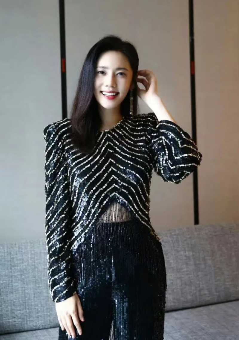 美中不足的是谢娜比例一般,头身比不具有优势,所以单看上半身没有问题,一到全身照就显得有点尴尬。