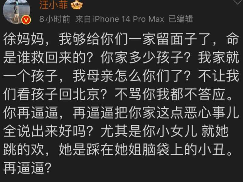 而就在不久之前,大S和汪小菲再次展开了骂战,甚至连双方家长都纷纷出面,一时之间两个家庭闹得不可开交。