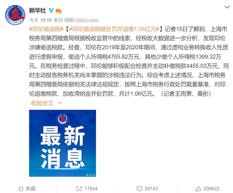 四、邓伦、袁冰妍偷税漏税