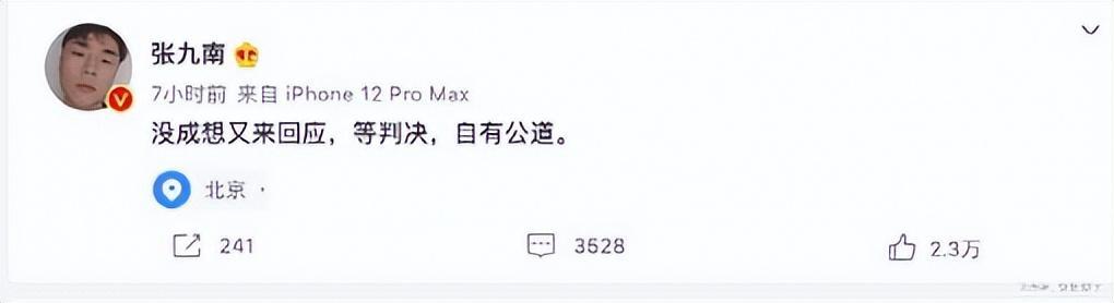 面对前妻的爆料,张九南非但没有认错,反而表现出了一副强硬的态度,声称“自有公道”,不知道的还以为他真被冤枉了。