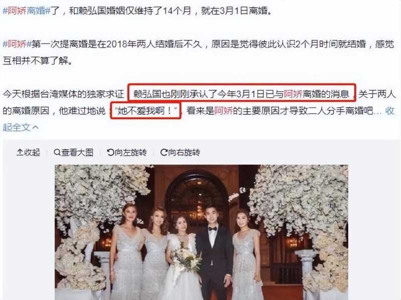 同时又传出她和丈夫离婚,虽然当时她老公赖弘国说明是阿娇不爱自己,但当时好多人猜测是阿娇真正喜欢的是陈冠希。