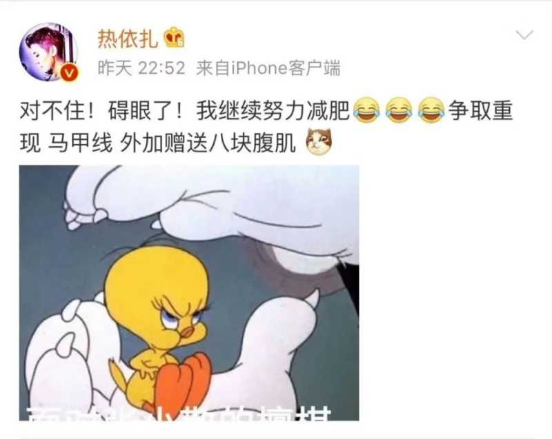 随后,热依扎在网上迅速发文回应机场争议:“对不住!碍眼了!我会继续努力减肥。我会继续努力减肥,争取重现马甲线,外加赠送八块腹肌。”