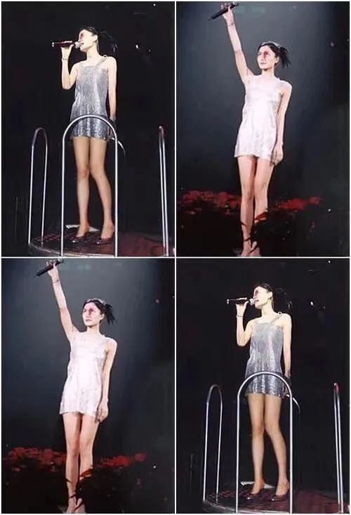各色的亮片吊带超短裙也是她的演唱会常规选择,一双美腿性感勾人。