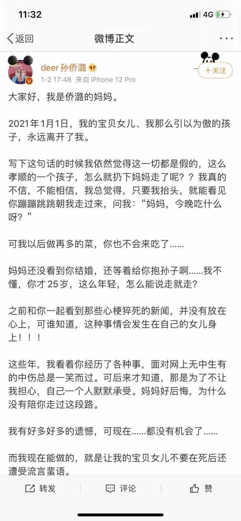 没想到的是,孙侨潞在25岁这年因为心梗突然去世。