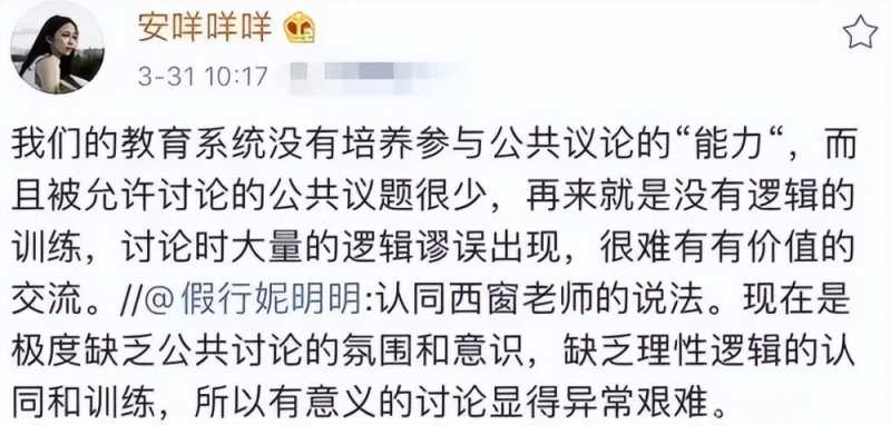 回国后在互联网公司工作。不过大概在国外待久了,三观也受到了影响,疫情期间发表了不恰当言论,