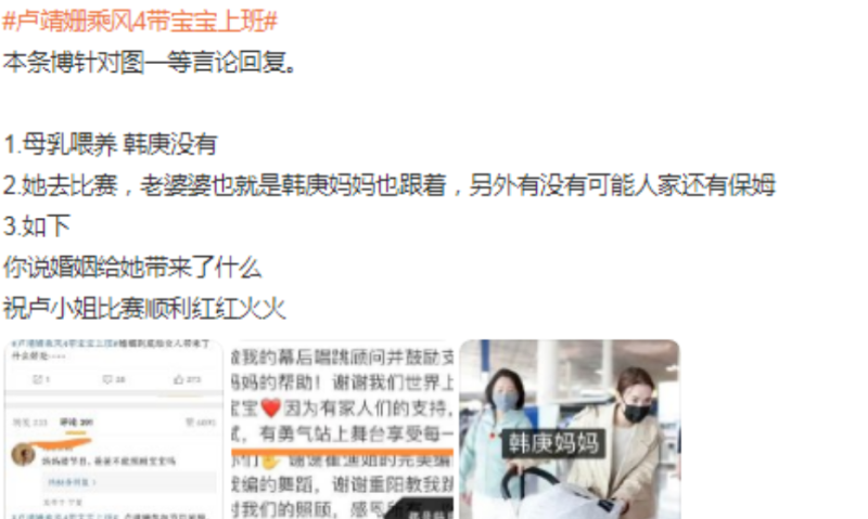 当然也有粉丝解释,孩子要母乳喂养,爸爸又没奶,而且韩庚妈妈也跟在身边,别盯着人家小夫妻了。