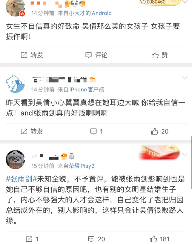 也不是凭空乱猜的哈,当初张雨剑就公开说过吴倩长得一般,戏也一般,干活还不认真,私下里估计也是没少数落过吴倩,