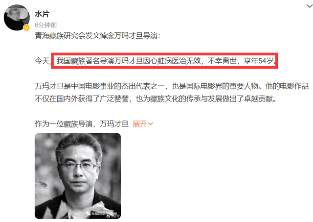 54岁导演万玛才旦去世,死因是突发心脏病,去世前一天还发了动态