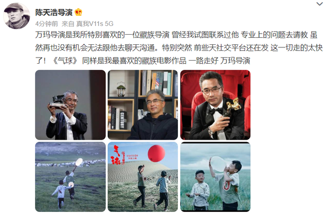 翻看万玛才旦的社交账号,他在5月1日还发布了动态,庆祝大家五一快乐,没想到一周后他就走了,太多人都不愿去相信。