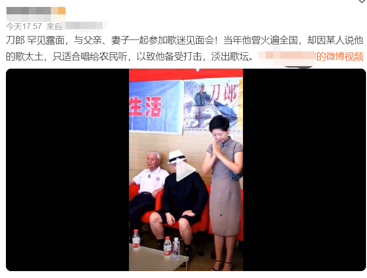 据网上媒体爆料,这次刀郎是和父亲、妻子一起参加歌迷会才现身的。