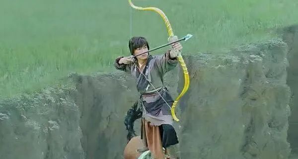 在名场面“射雕”前还摆了个造型,从背后反手弯弓射箭,很有创意,但却华而不实,美感有余而力量不足。