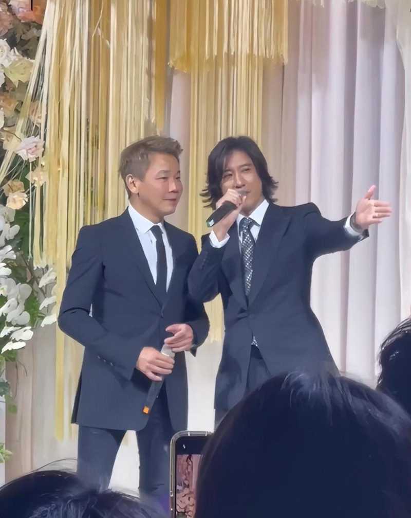 视频中,王力宏与陶喆正在认真合唱歌曲《Forever Love》,王力宏一张嘴声音状态依旧很好,甚至比之前状态还稳,两人也将婚礼现场的气氛给点燃。