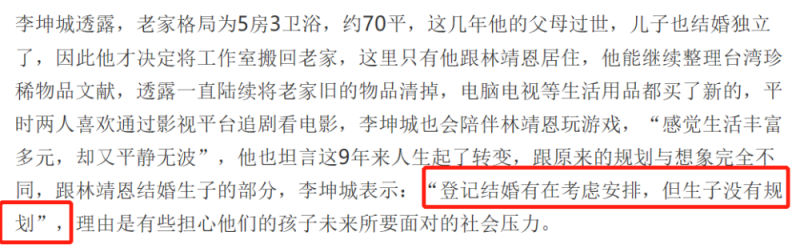 有报道称,李坤城的大儿子透露,父亲没有给他留下一分钱,而是将全部遗产给了小娇妻林靖恩。