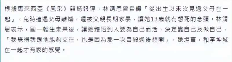 正因为如此,受不了父亲暴力的林靖恩,甚至在13岁的时候就想过自杀。