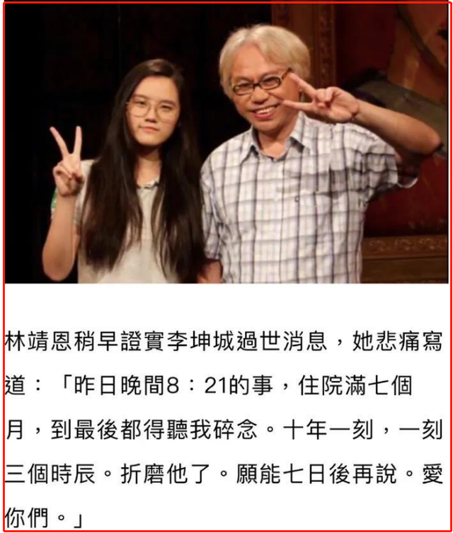 林靖恩在社交网络发文证实李坤城离世的消息,说他因为癌症,整整在医院里住了七个月。