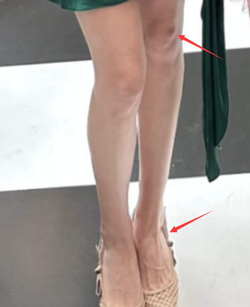 另外不得不夸下张馨予的身材,修长美腿线条优越,不过由于太瘦,张馨予脚背青筋凸起的颇为明显,膝盖部位还留有一块淤青。