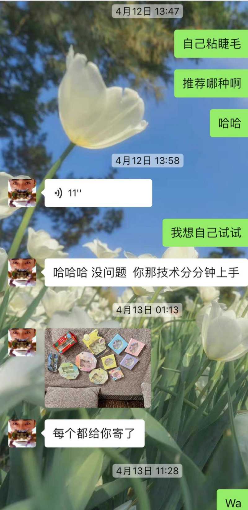 在评论区,张馨予还晒出了自己与老公何捷的私下聊天,可以看出在动手粘假睫毛之前,张馨予特意询问何捷推荐哪种款式,而暖心的何捷则一口气买了十余种睫毛寄给张馨予,宠妻姿态惹人欣羡。
