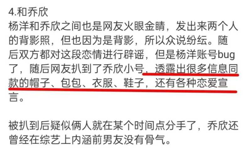 接着,就是杨洋和乔欣的绯闻,两人曾做过一年的同学,他们恋情传出后,虽然乔欣否认过,但她的小号被扒。