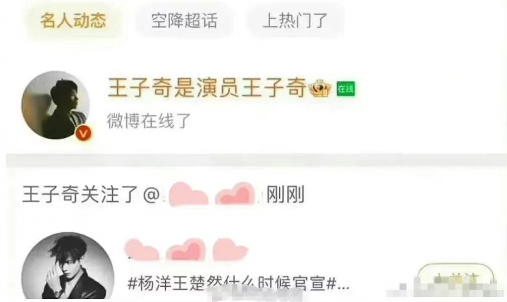 恋情曝光后,杨洋始终保持沉默,舆论愈演愈烈,热搜上的一大半词条都是关于杨洋的,就连明星王子奇,也在吃瓜杨洋王楚然的恋情。