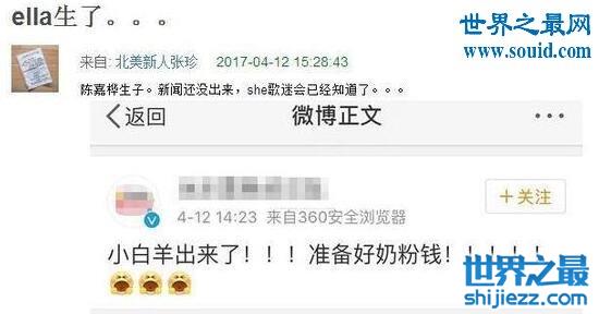 Ella自2012年与马来西亚华侨男友赖斯翔结婚,但婚后四年Ella肚皮始终没有动静。现在终于生孩子成功升级当妈了,网友纷纷表示:“没想到她们仨,Ella第一个”、“恭喜恭喜一定像他妈妈一样,有超好的性格”、“今天好热闹”、“S.H.E 里面的假小子先当妈妈了”。