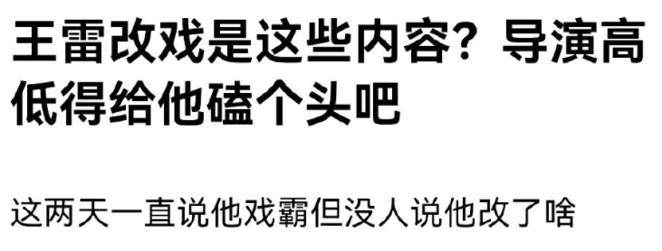王雷爱改戏这件事,不仅仅是被多人爆料,他自己也承认过,不过却表示自己是二度创作。