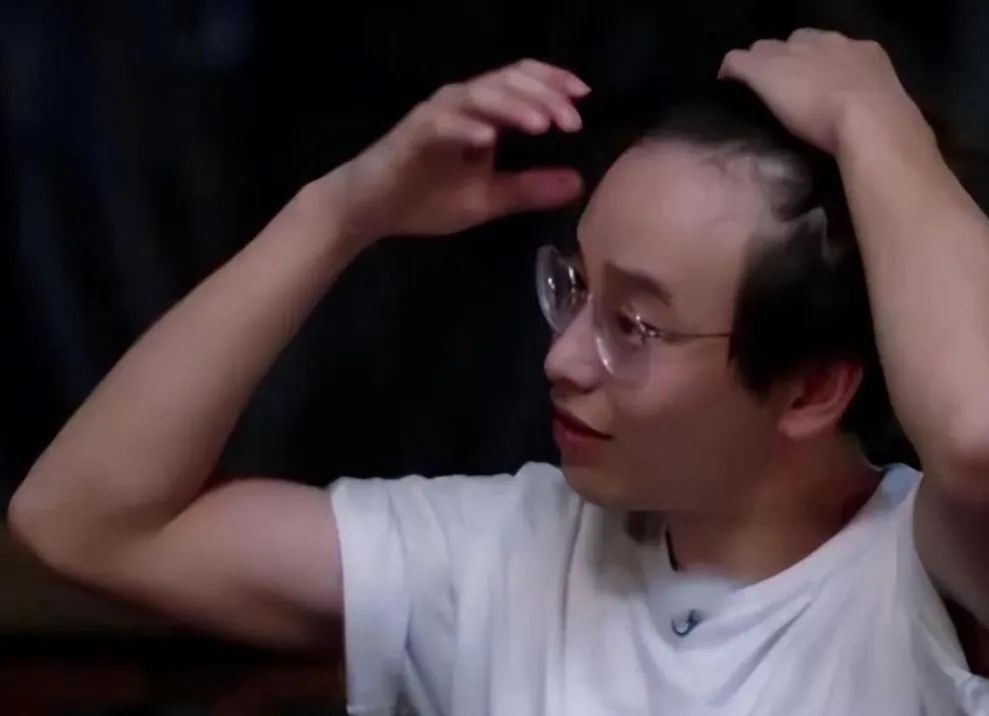 在此之后,彭昱畅干脆不演了,经常在各种节目里展示他稀少的头发,在《向往的生活》里更是直接撩开头发,好家伙,一下子就从清纯美少年变成了沧桑大叔。咱就是说,这个发际线确实不能离开假发片。