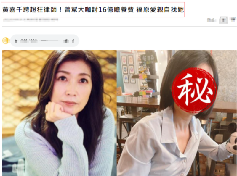 有一系列成功的案例在身上,赖芳玉成了个“香饽饽”,这也让不少有离婚诉求的女星慕名而来,像是参加过《爸爸去哪儿3》夏天的妈妈黄嘉千和前夫夏克立的离婚官司,就请了赖芳玉做离婚律师,福原爱离婚的时候也找了她。