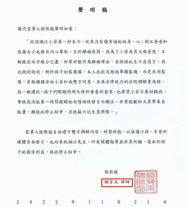 可以毫不夸张地说,赖芳玉已经成了圈内明星离婚的“金字招牌”,在大S和汪小菲的离婚案件中,大S的离婚律师也是她。