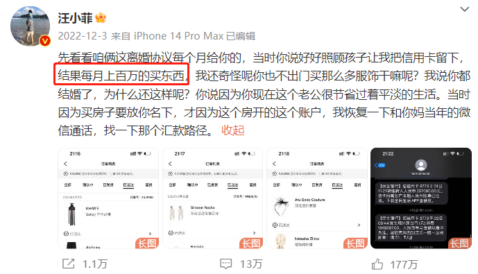 (汪小菲晒出的每月生活开销)