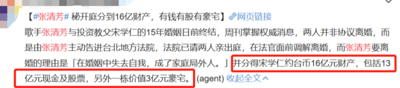 在2020年,两人结束了长达15年的婚姻,而在赖芳玉律师的帮助下,张清芳花500块调节费,就获得了高达16亿新台币的赡养费,这一战也让赖芳玉的名声大噪。